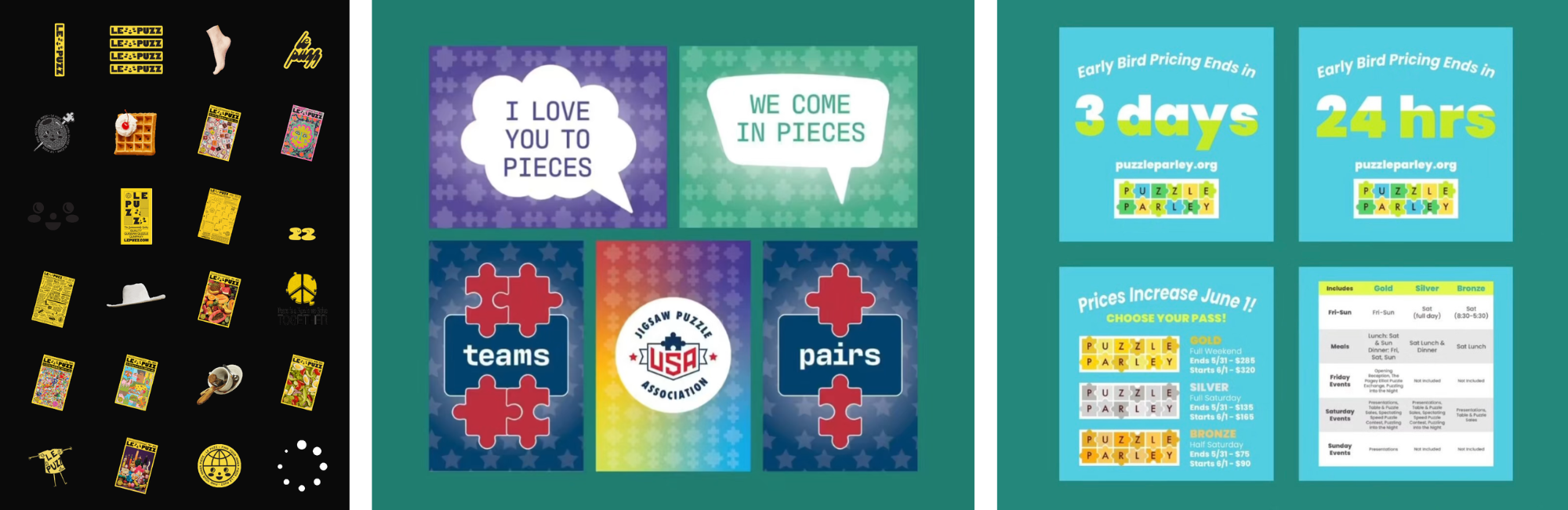 So with Le Puzz, I designed a bunch of their GIFs on Instagram. I did that a few years back. It was really fun. That was one of my favorite projects. I've worked with the USA Jigsaw Puzzle Association. I've volunteered with them to make some graphics here and there. I helped with Puzzle Parley the last time they had that. I'm always open to work with anyone if they ever need design help.
