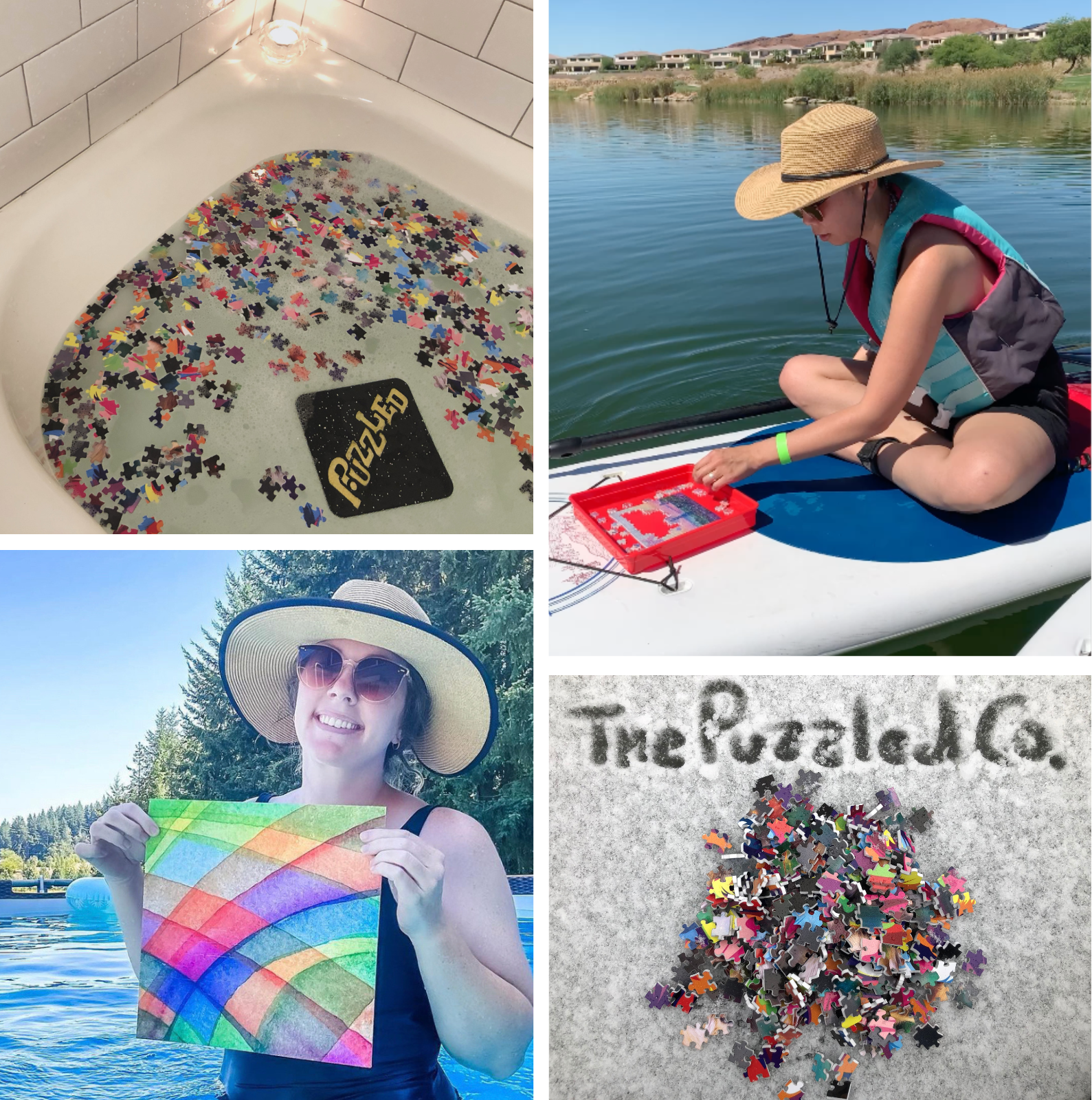 You can puzzle in the bathtub. They actually do stick to the walls of the tub. If you want to sit by the side of the pool and puzzle and drink, you can.