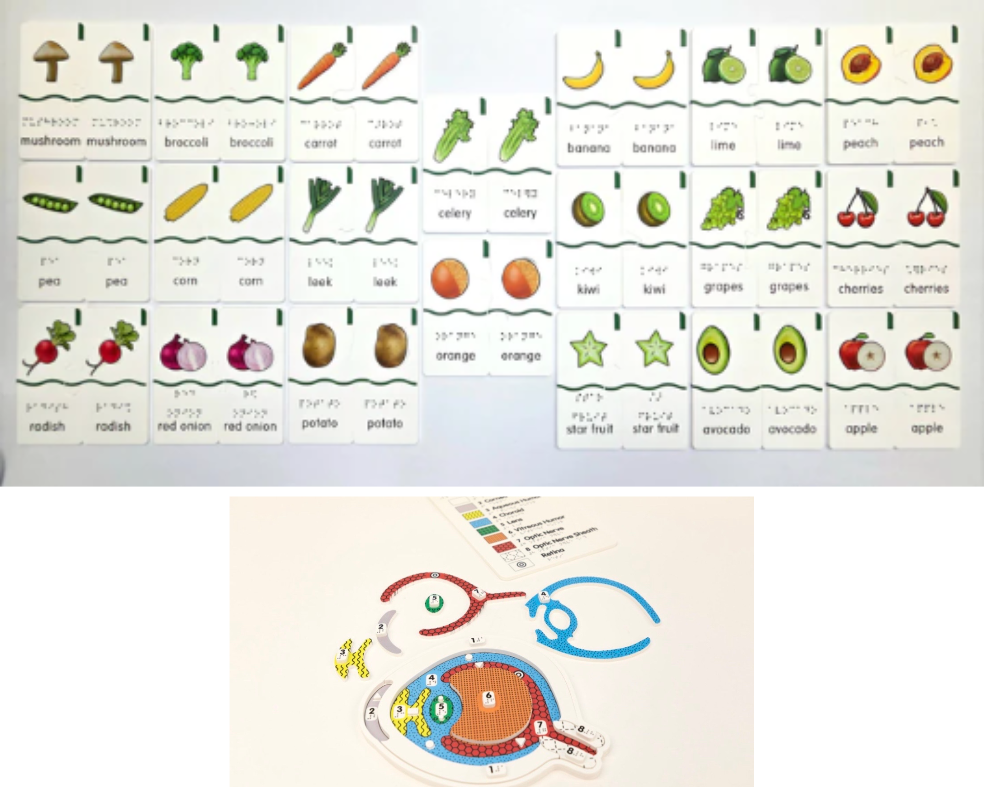 You can feel the shape, so that's really important. So we did a whole matching game of fruits and vegetables that we created tactile graphics of these fruits and vegetables.
