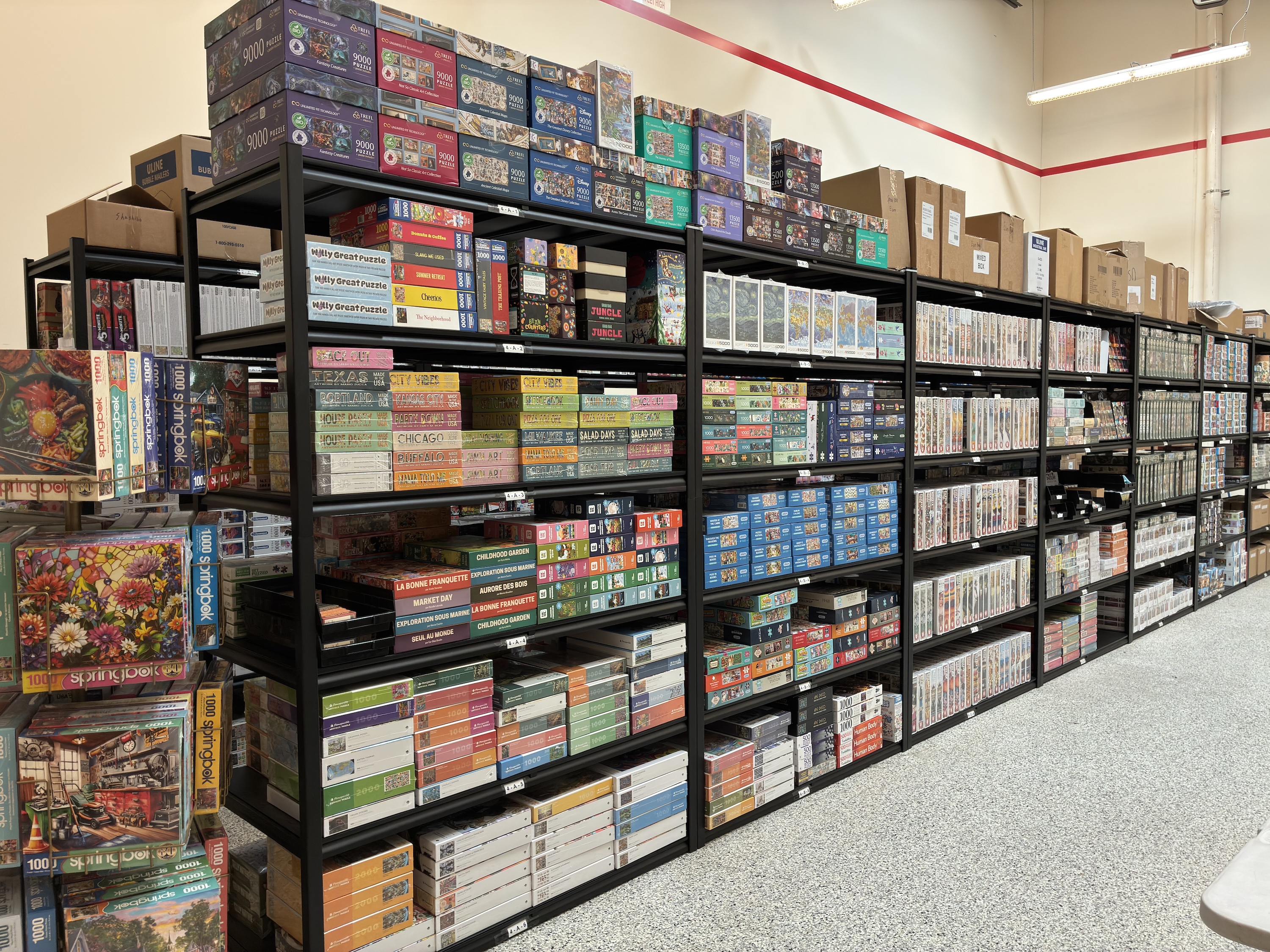 Although most of Puzzle Merchant’s sales are from online traffic, about 20% of their business is in-person. Locals and international visitors alike have discovered this puzzle oasis in the Las Vegas desert. Walking through the showroom and warehouse, you’ll find puzzles organized by brand, piece count and theme so you can easily find what fits your taste. Popular, best-selling brands like Ravensburger, Cobble Hill, Galison and Eurographics fill the shelves in the front showroom, and dozens more brands can be found in the warehouse, which customers are also welcome to walk through and shop.
