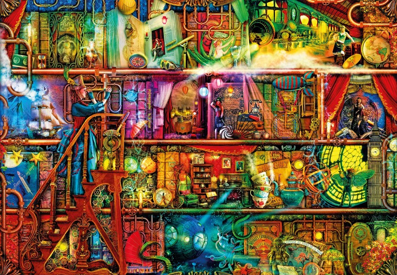 This mystical, fantastical image was created by Aimee Stewart, a wildly popular puzzle artist. 1,294 of you love the rainbow of colors, the steampunk elements, and being transported into scenes of wonder and exploration through this puzzle.